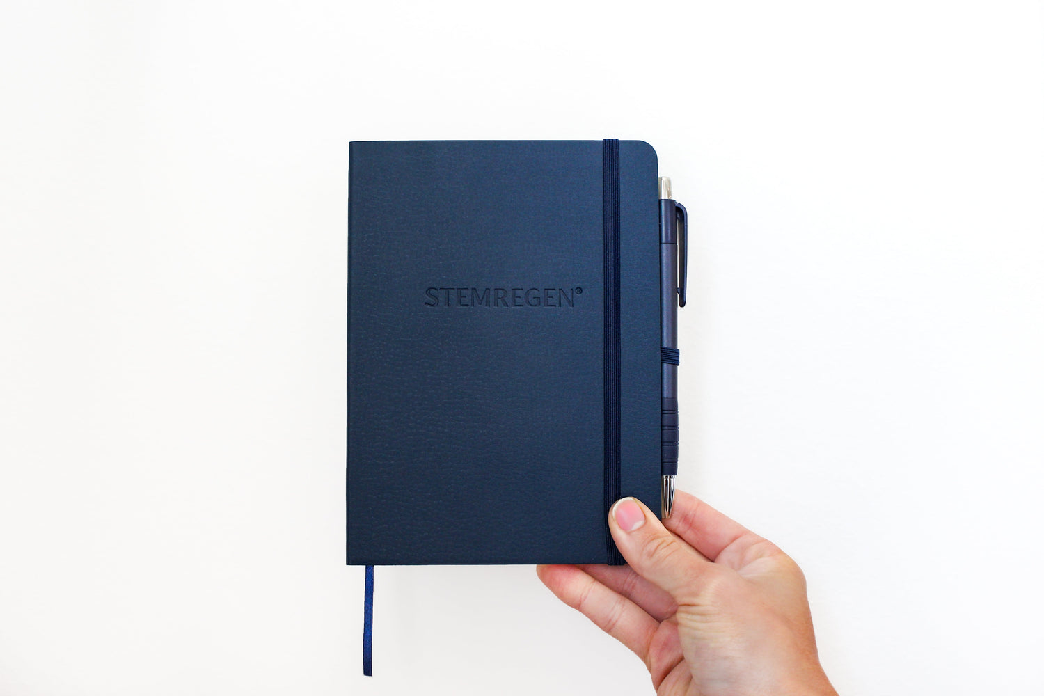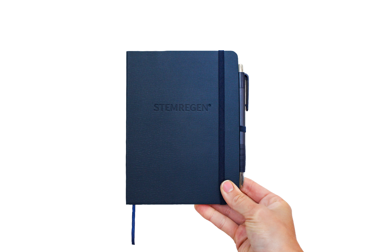 Sonado STEMREGEN®-debossed perfect-bound notebooks are made with a polyurethane soft cover. Designed with a color-matching elastic band closure, pen loop and ribbon bookmark. Includes a retractable, click-action pen with a rubber grip that writes in medium-point black ink.